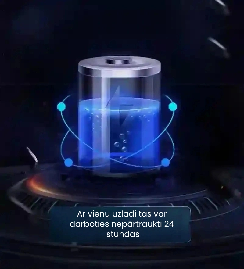 Augstas ietilpības akumulators. Ierīci darbina nemainīga sprieguma akumulators, kas ļauj tai darboties 24 stundas diennaktī.