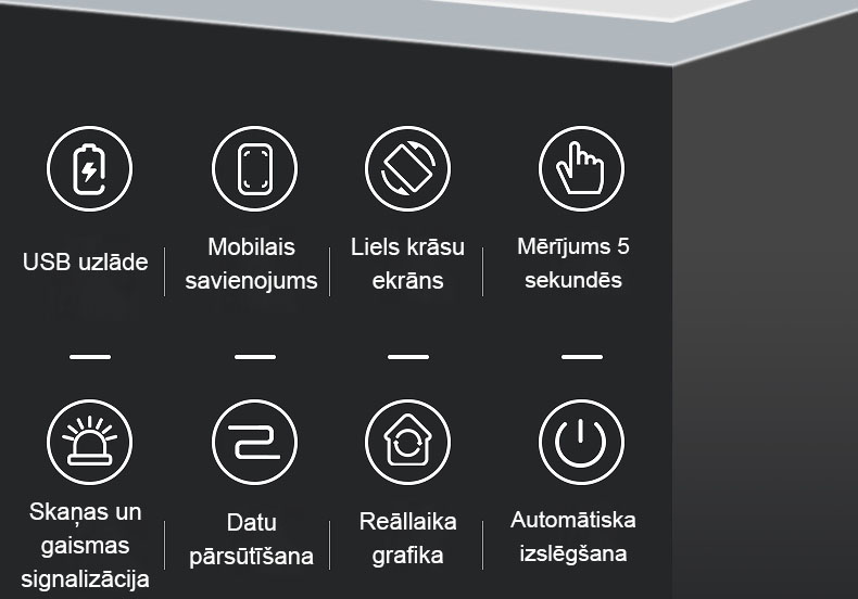 5 sekunžu mērījums/99% precizitāte/nesāpīga/nav nepieciešamības ņemt asinis