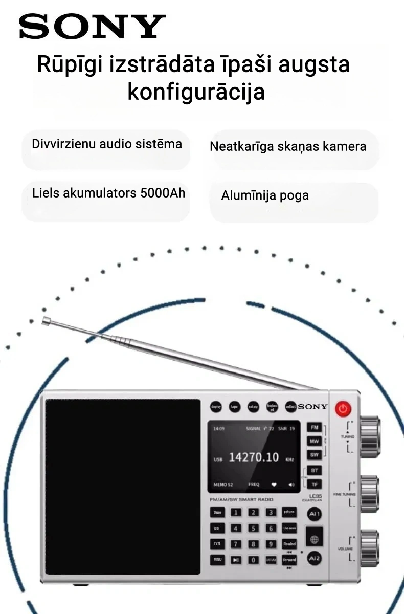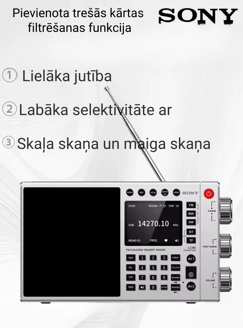 Sony ir sena vēsture un milzīga ietekme uz apraides nozari. Pasaulē pazīstamais elektronikas ražotājs Sony pirmo reizi ieviesa portatīvos radioaparātus pagājušā gadsimta piecdesmitajos gados. Šoreiz Sony iepazīstina ar daudzfunkciju radio.